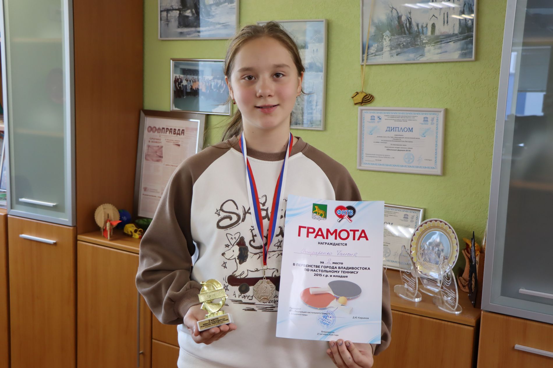 Ученица 4м1 класса Таисия Бондаренко успешно выступила на Первенстве Владивостока по настольному теннису и заняла 2 место.