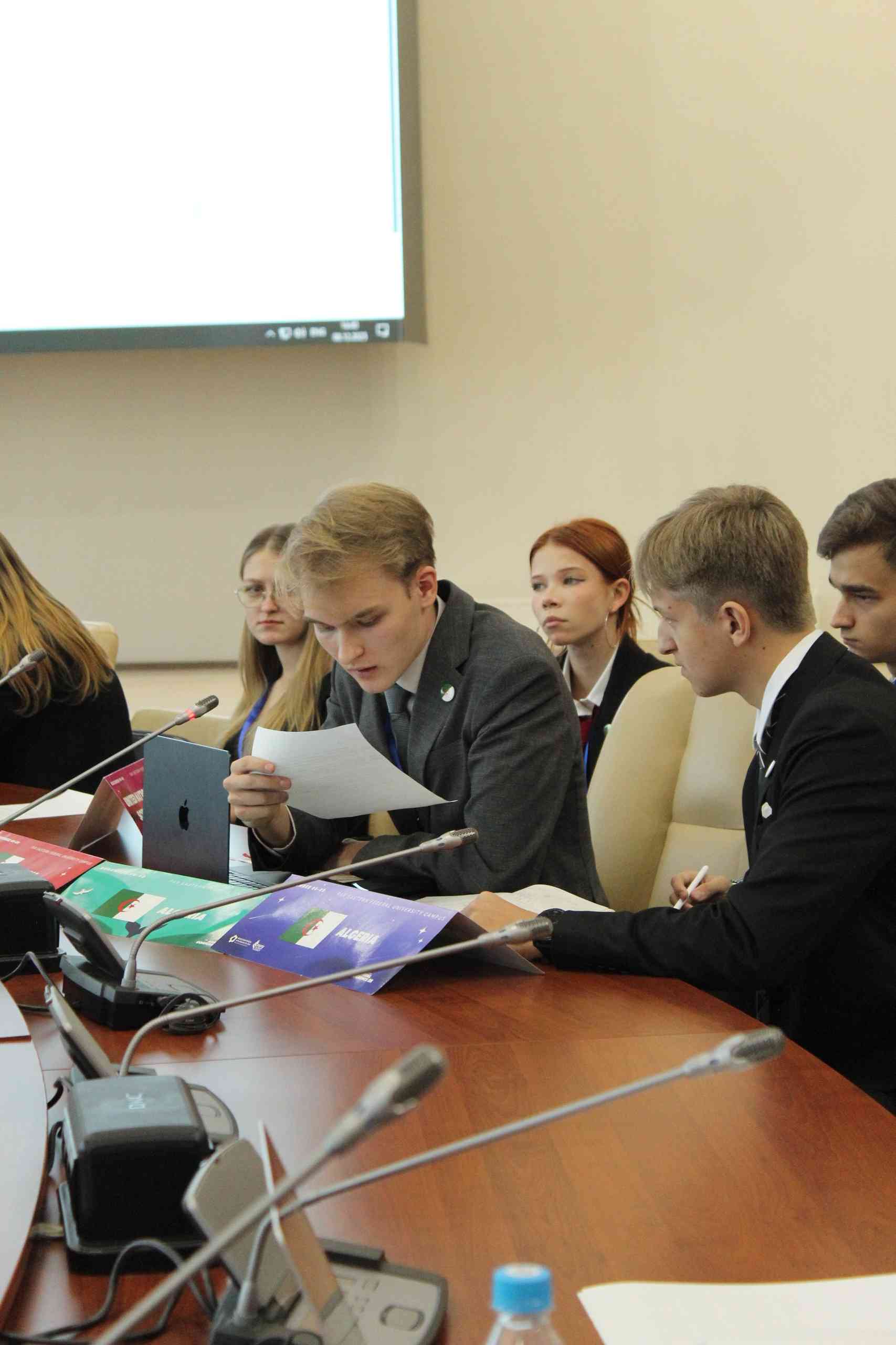 - Подготовка к мероприятию была достаточно непростой, - поясняет Владимир Александрович Тананыкин. - Участникам необходимо было написать несколько документов на английском языке: один командный и два индивидуальных на заданную тему обсуждения. Ребята осознавали, что участие в конференции это не только шанс прокачать свои лидерские качества и навыки публичных выступлений, повысить свой уровень языка и получить дополнительные знания о международных отношениях, но ещё и отличная возможность познакомиться с новыми людьми, показать себя и зарядиться положительной энергией совместной работы.