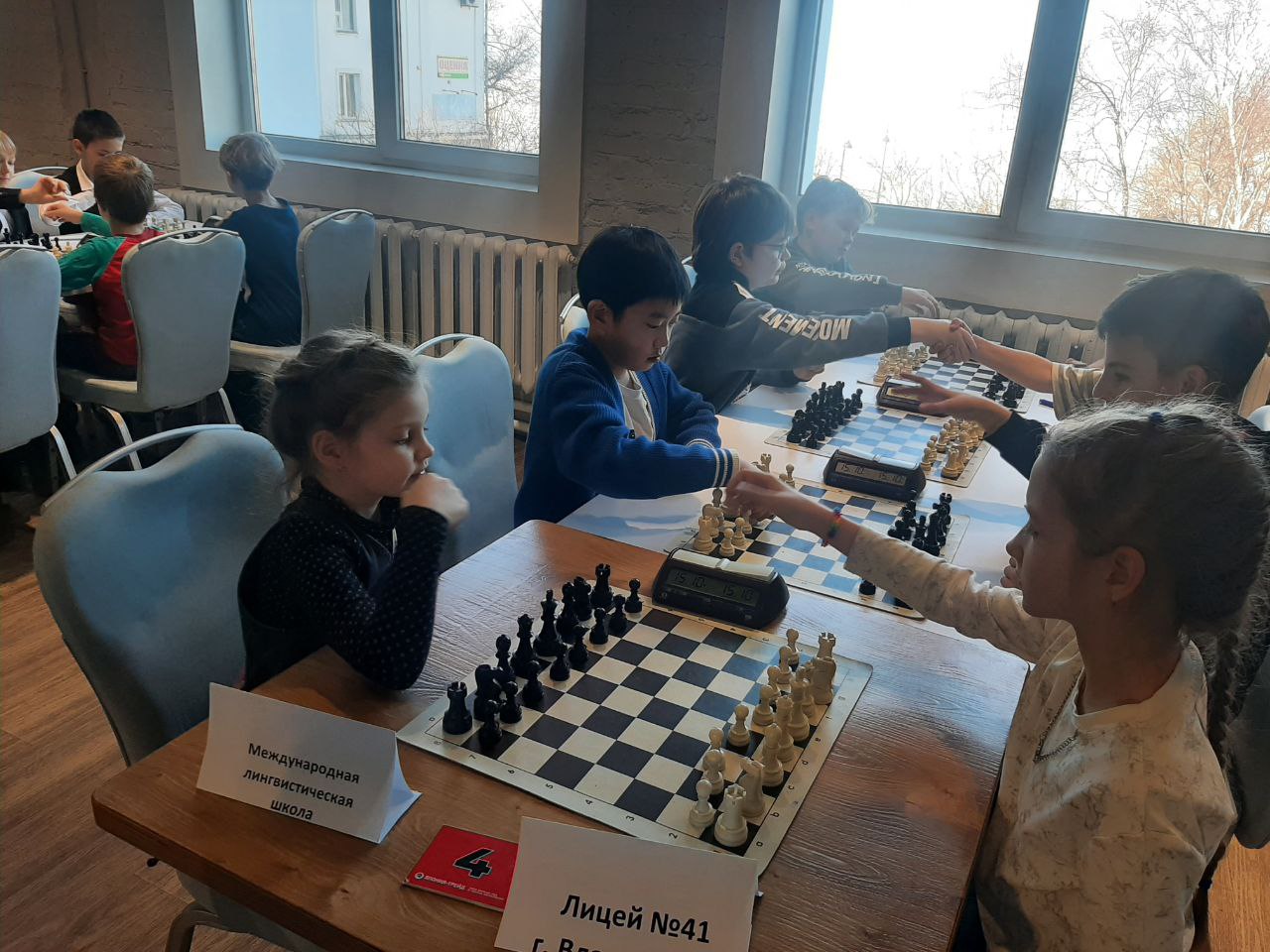 Ученики начальных классов Международной лингвистической школы Лев Зебницкий (4м1), Савва Икономиди (4м2), Ким Сиху (4м2) и Василиса Шубина (1м1) приняли участие в краевых командных соревнованиях по шахматам «Малая белая ладья».