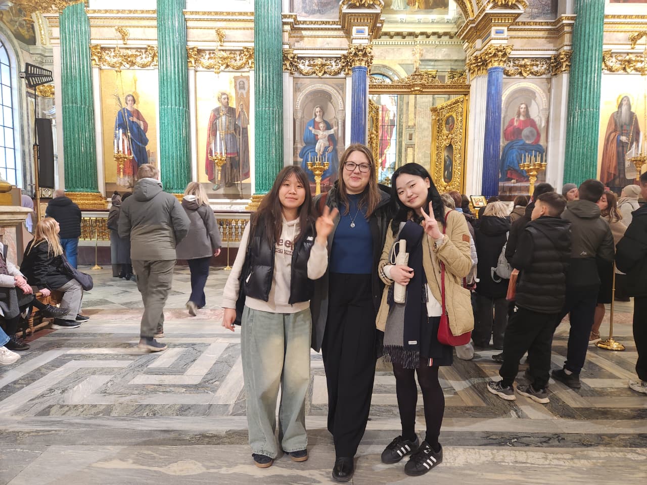 Во время поездки я ещё ближе подружилась с Даной, Машей и Джию. Дана — одноклассница Джию, а Маша приехала в Санкт-Петербург из Москвы с бабушкой, дедушкой и братом и гуляла с нами. После поездки мы продолжаем переписываться. Я рада, что познакомилась с хорошими русскими друзьями.