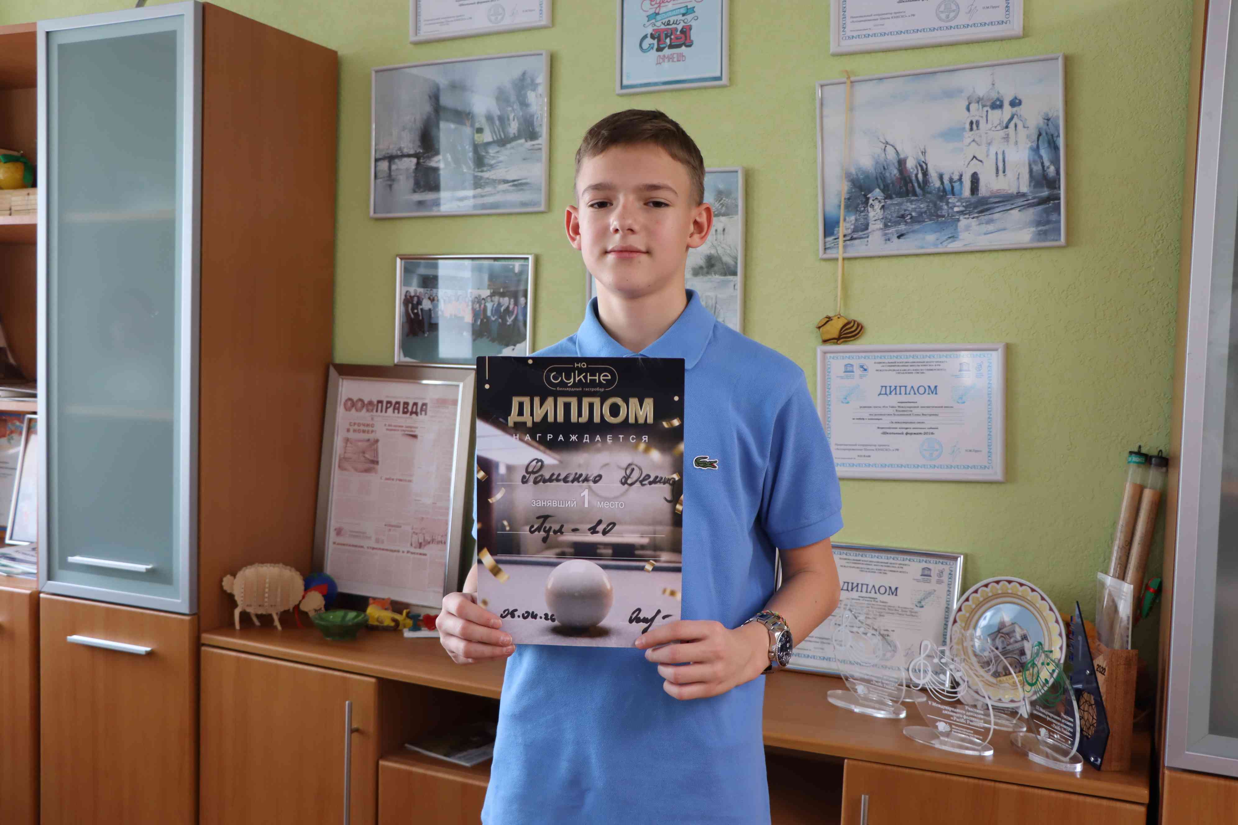Ученик 6м1 класса Международной лингвистической школы Демид Фоменко стал победителем соревнований по бильярду «Пул 10». Школьнику удалось обыграть соперников намного старше себя и стать лучшим.