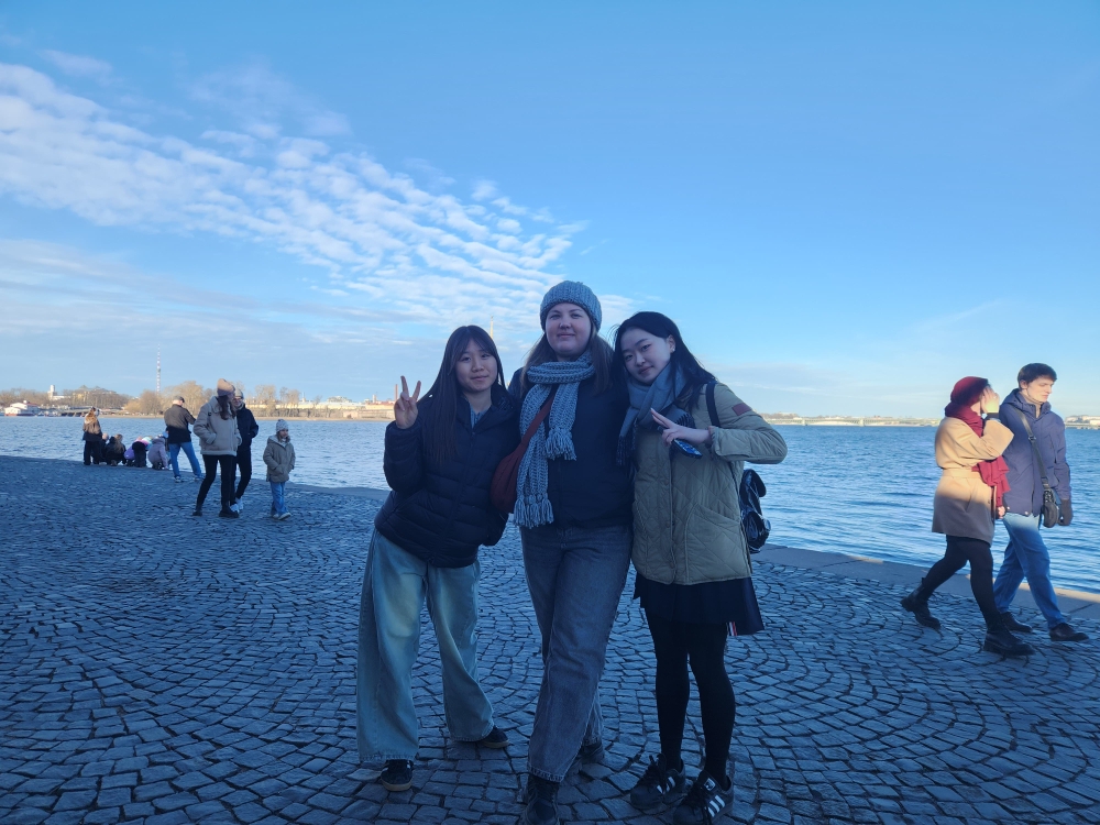 Во время поездки я ещё ближе подружилась с Даной, Машей и Джию. Дана — одноклассница Джию, а Маша приехала в Санкт-Петербург из Москвы с бабушкой, дедушкой и братом и гуляла с нами. После поездки мы продолжаем переписываться. Я рада, что познакомилась с хорошими русскими друзьями.